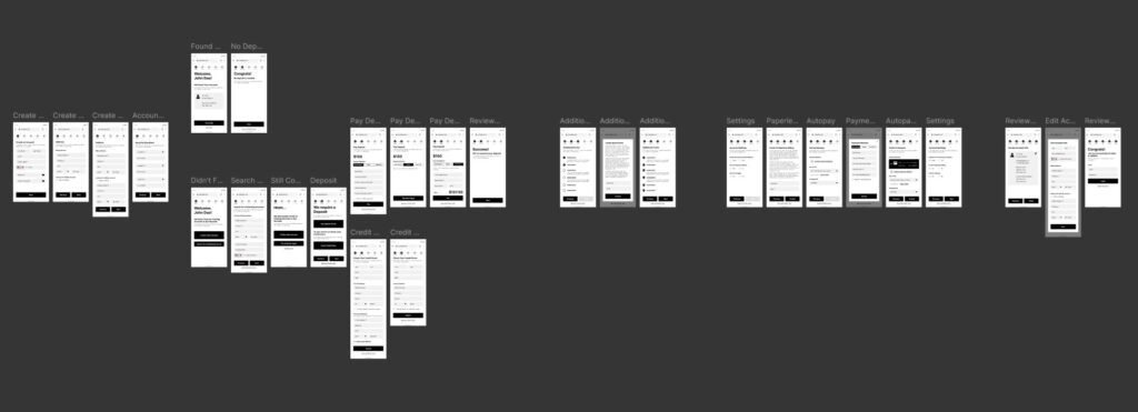 Using the user journey I created a lofi for Meridian following the account creation. The lofi was created for the mobile app using a mobile first approach to the design as this would better ensure that data displays well at every screen size.