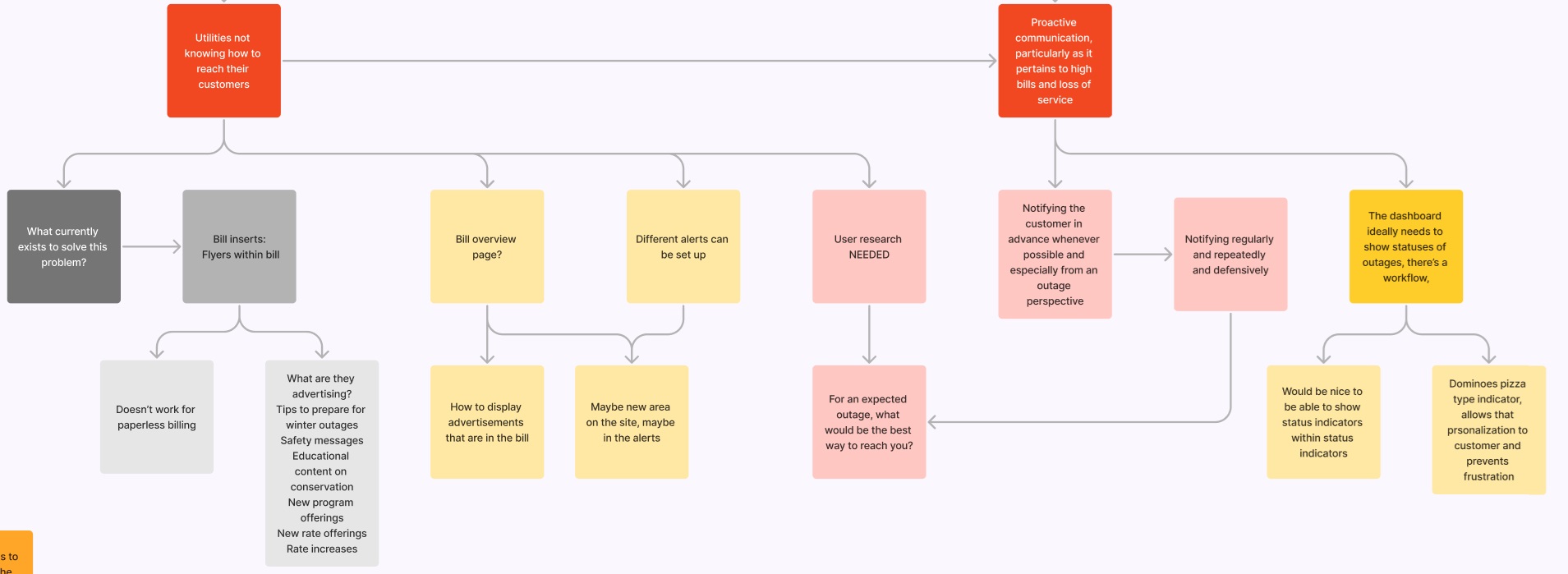 What I discovered combing through the app was that the responsiveness of the pages was almost entirely lacking, the language was confusing, the pages organized in a confusing way, there was no focus on what users were utilizing the most on the sitemap, and also no focus on what might become important in an emergency situation like an outage.