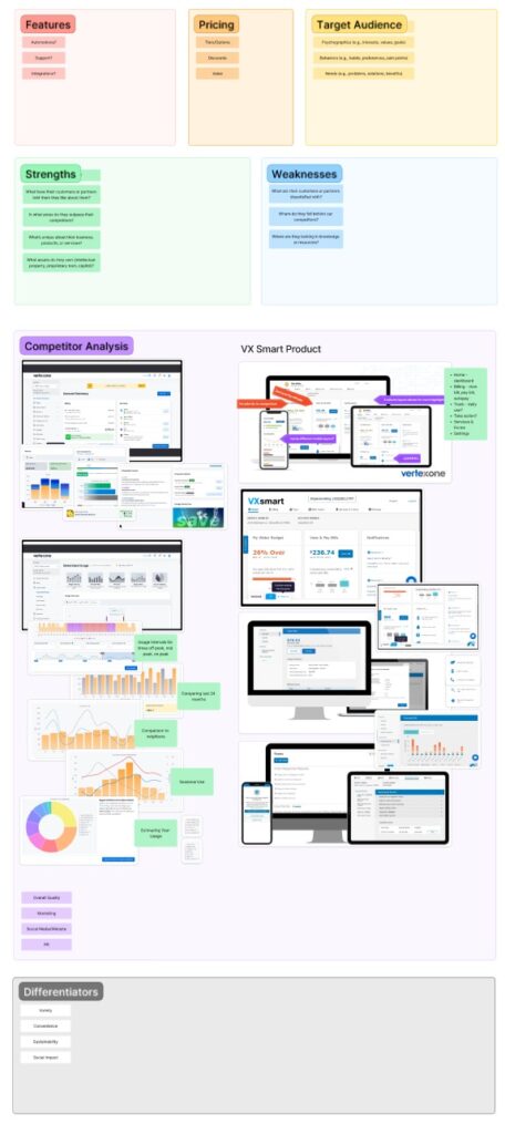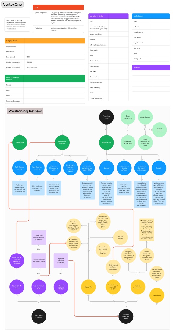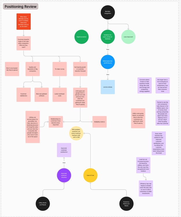 The competitor analysis was also very important in finding where we could position Meridian Integration in the existing market. They were holding an unusual position with the size of clients they serve. Mid-size utility companies don’t have as many options in comparison to both the small and large utility companies. However, some of their competitors were positioning themselves in ways that were attracting the companies Meridian should have been the primary software to serve. Understanding how each competitor positioned themself was incredibly important for this reason. Understanding each companies strengths and weaknesses, as well as their target audience and the features they provide was important in getting a gauge for where Meridian Integration existed in the current market and where they could grow.