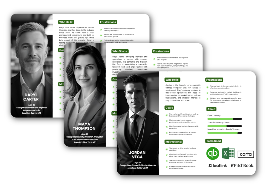 Users value clarity, speed to insight, and cannabis-specific financial relevance, which means the app must prioritize intuitive dashboards, customizable alerts, and easy-to-generate reports.