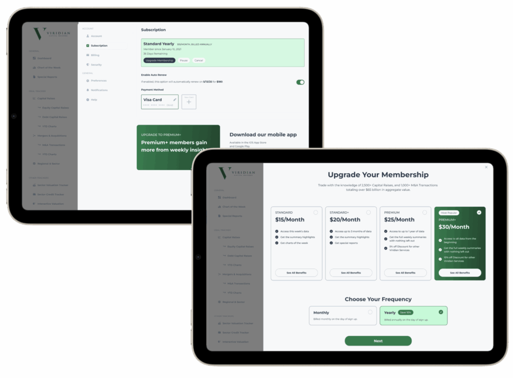 Viridian Capital Advisors wanted to offer their data in an easier to understand with the goal that their clients who had received this data for years free through their newsletter would see the value in transitioning to a platform that could scale with the companies data needs.